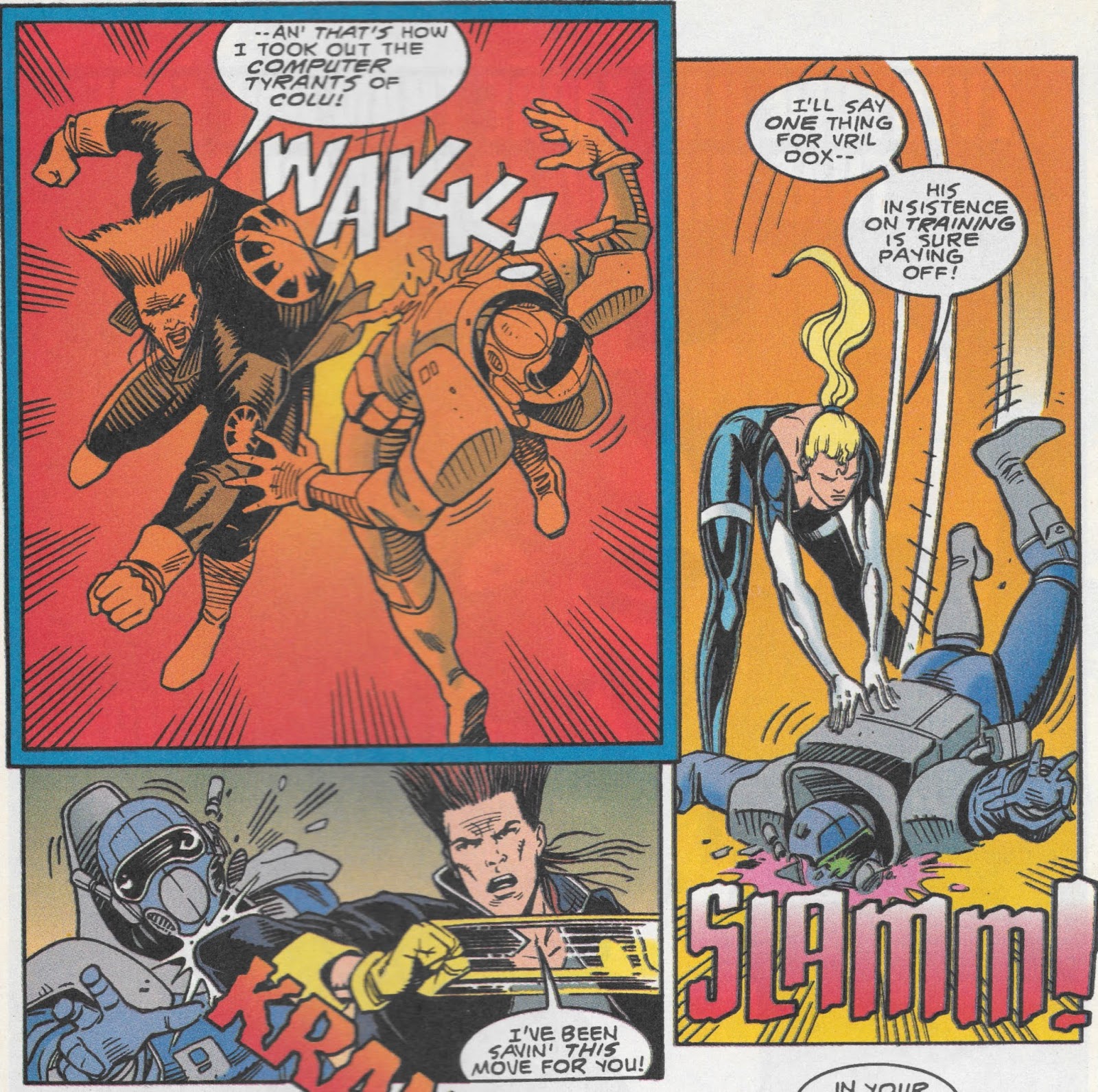 Despite that, this storyline has allowed for some interesting developments with other members of the team. As I said last time, I have never been fond of Bek, but he has really stepped up recently. His embrace of Marij'n was awkward but they were married so it is understandable and at least he did not act like a jerk after she rejected him. Lady Quark struggled last issue as to whether or not she wanted to remain, but once she decided to, she put forth every effort this issue and fought with her heart.